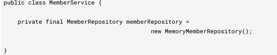 이러면 memberService가 생성될 때마다 new를 호출하기 때문에 새로운 리포지토리가 나와 필요없는 작업을 하게 되었다.