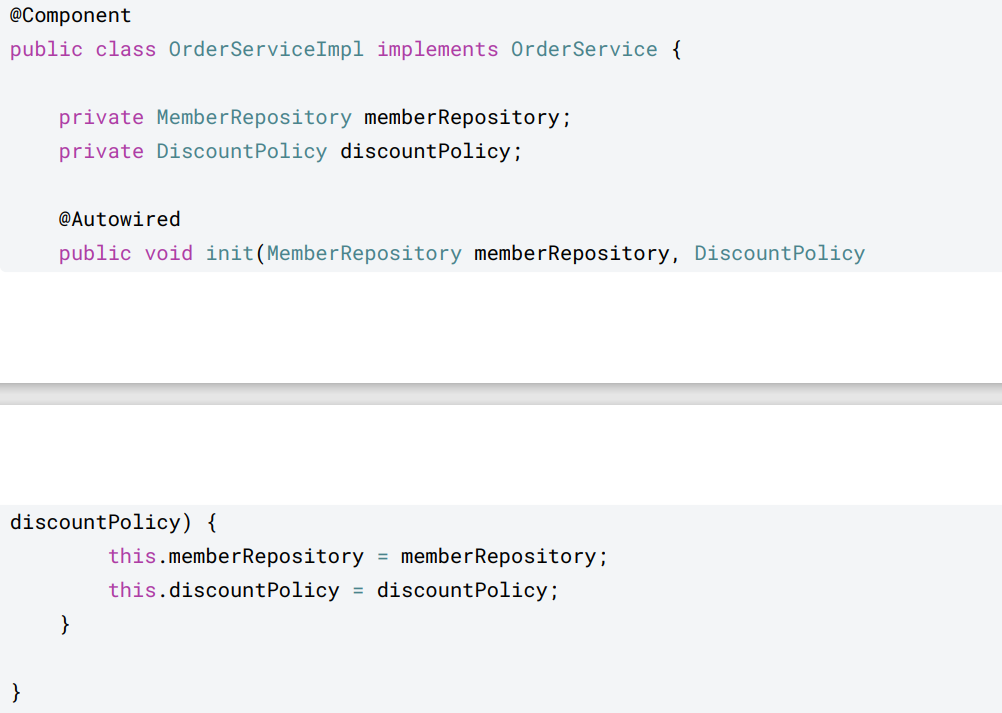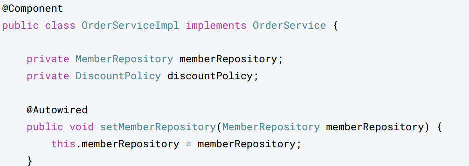 public OrderServiceImpl(MemberRepository memberRepository, @MainDiscountPolicy DiscountPolicy discountPolicy) {